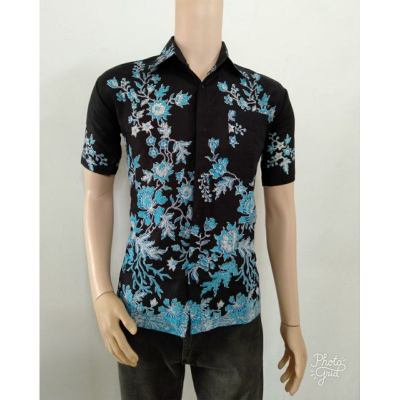 Name: Hem Batik Kencana Hitam | Atasan Pria Batik Modern Batik Pria Motif New Sekar Warna Merah Pekalongan