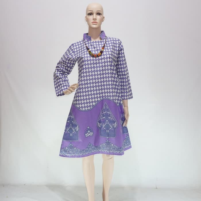 Tunik Batik Wayangan Ungu DSC03794 murah varian warna ungu dengan harga murah menggunakan bahan katun prima. Tunik batik lengan panjang cocok untuk digunakan saat santai ataupun untuk baju kerja di kantor